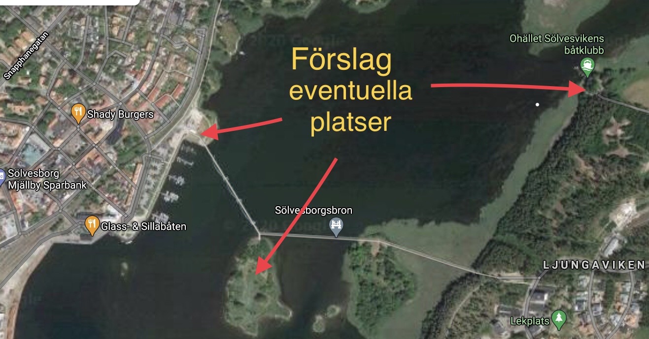 Vi har många platser nära centrum och nära vår fina bro, där ett kallbadhus skulle kunna ligga(se bifoga bild).